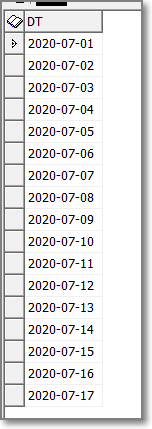 CONNECT BY LEVEL <= (TO_DATE('20200717', 'YYYYMMDD') - TO_DATE('20200701', 'YYYYMMDD')) + 1