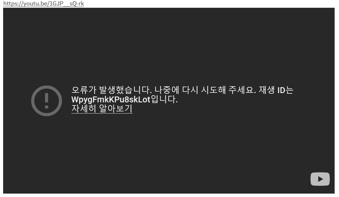 저도 유튜브에 동영상 올리고 URL을 복사하여 넣었는데 다음과 같이 오류가 발생하였다는