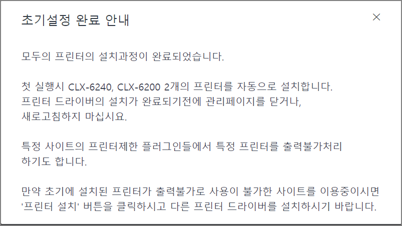 ▼ 모두의 프린터가 실행되어 초기 CLX-6200 드라이버를 다운로드하여 설치하고