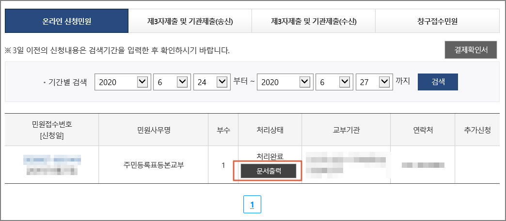 ▼ 주민등록 등본을 인터넷 교부 신청을 하구요