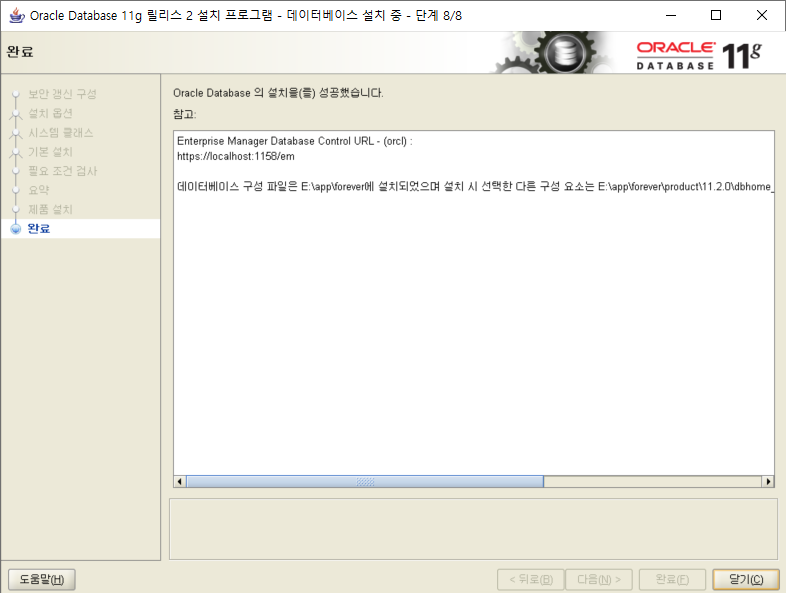 이상으로 오라클 11g 설치에 대해 설명을 드렸습니다.