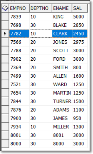 SELECT EMPNO, DEPTNO, ENAME, SAL