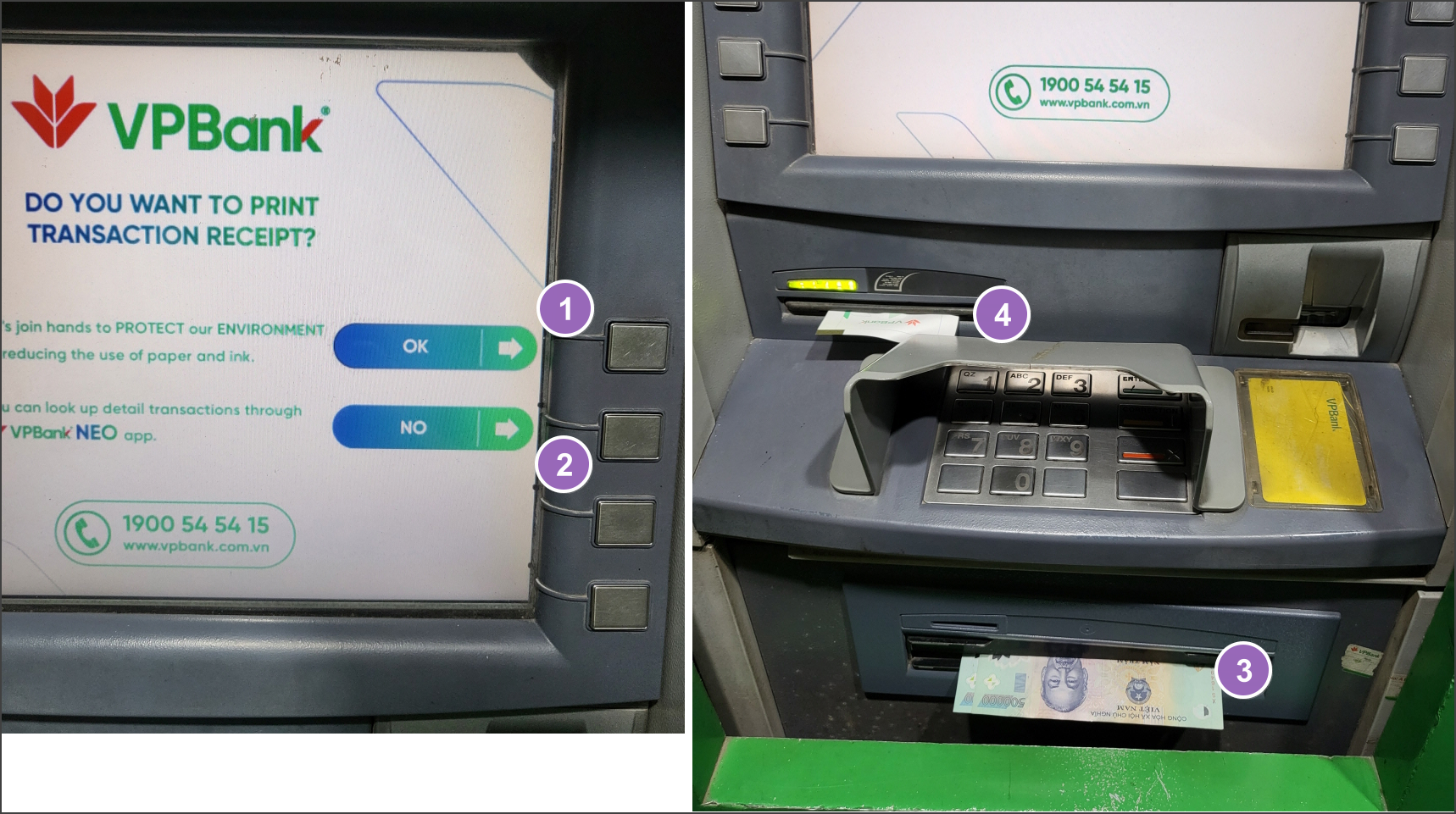 베트남에서는 VP Bank ATM기에서 현금을 인출하시면 23년 4월 기준 ATM기 인출 수수료도 무료입니다.