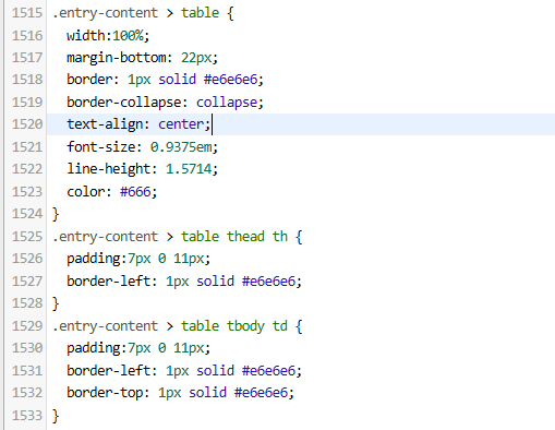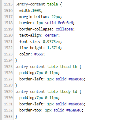 본문에 표를 안쓰신다면 . entry-content table 관련 스타일을 삭제해주시거나