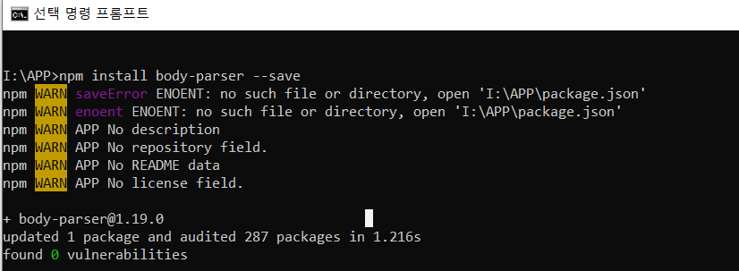 ▼ express 모듈 설치 모듈(라이브러리) 설치