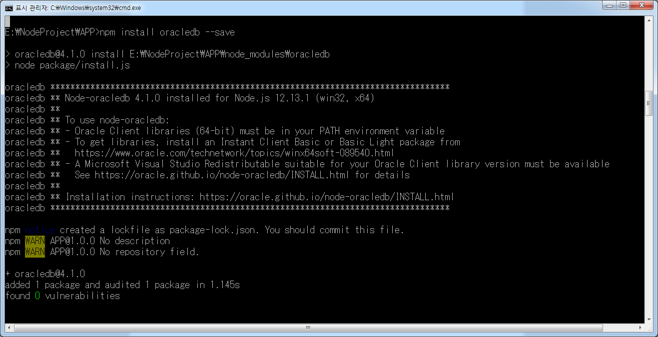 Node.js에서 oracledb 라이브러리를 통한 오라클 연결 방법입니다.