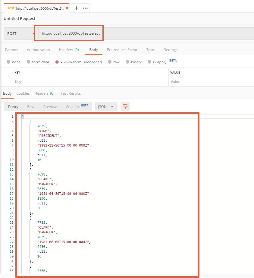 ▼ http://localhost:3000/dbTestSelect 실행결과
