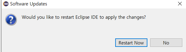 * 설치가 완료되면 Eclipse를 재시작 합니다.
